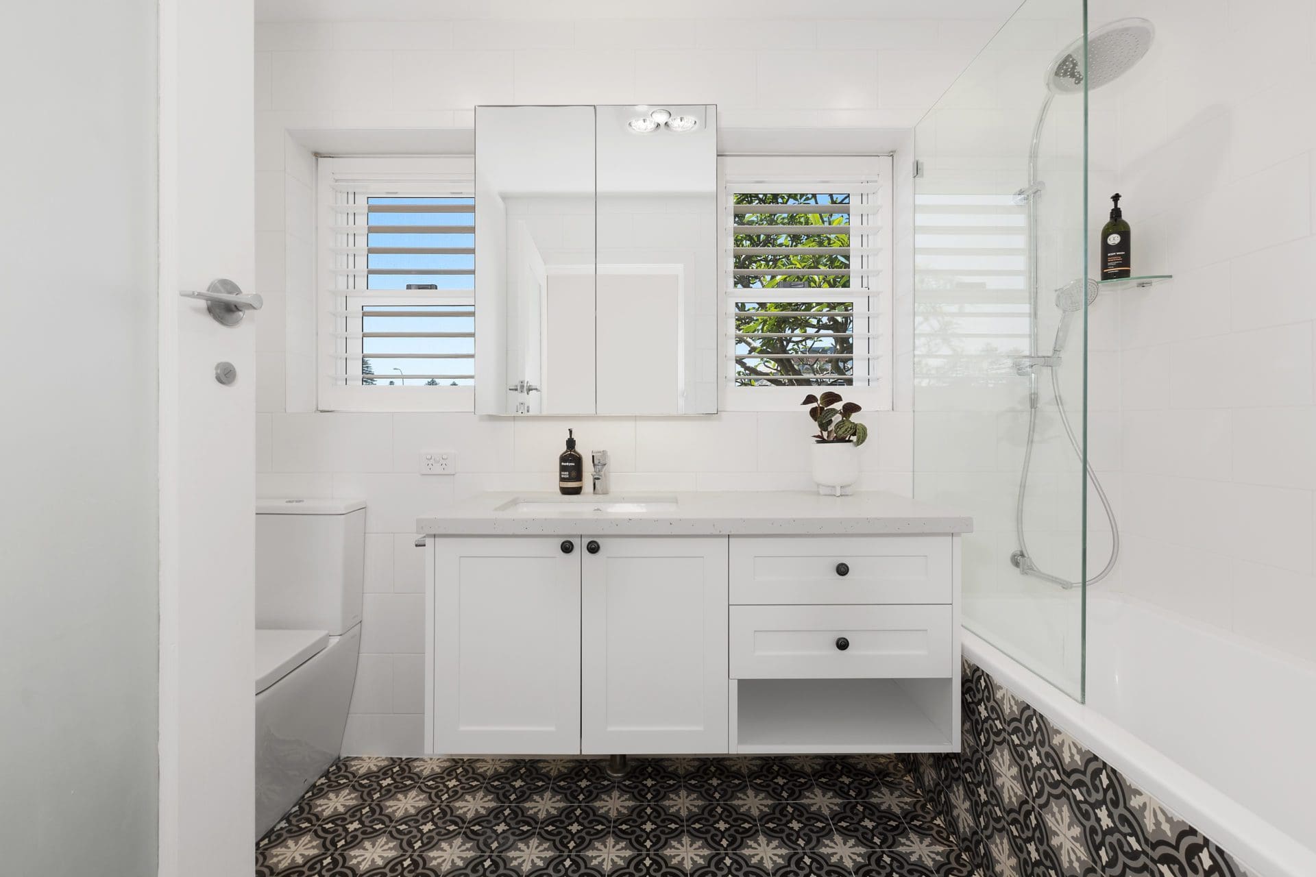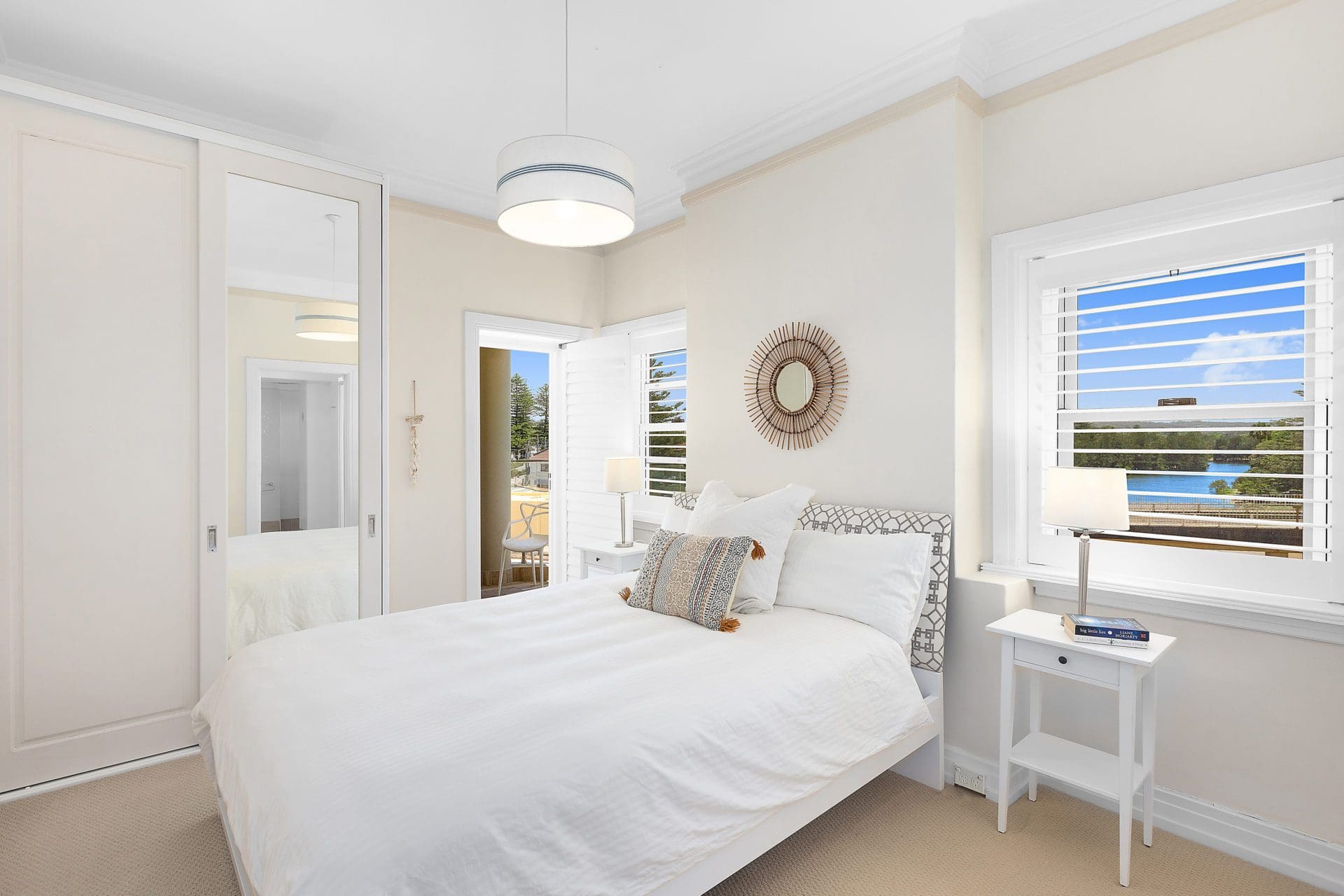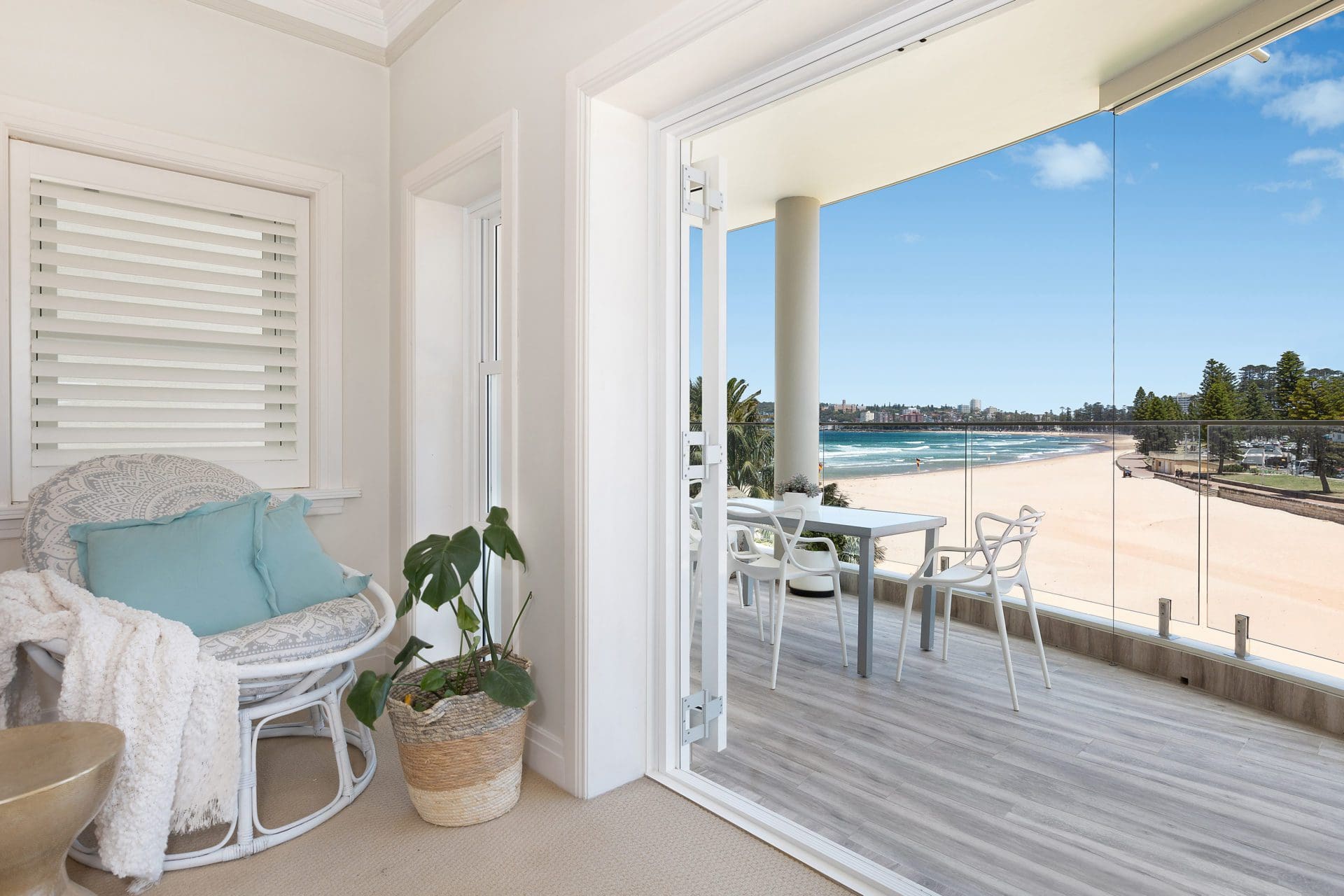 Each of the bedrooms are beautifully dressed, have quality linen and plush mattresses for comfort. The master bedroom overlooks Manly Lagoon and enjoys glimpses to the sands below, and a connected balcony which wraps around to the large family terrace beyond.